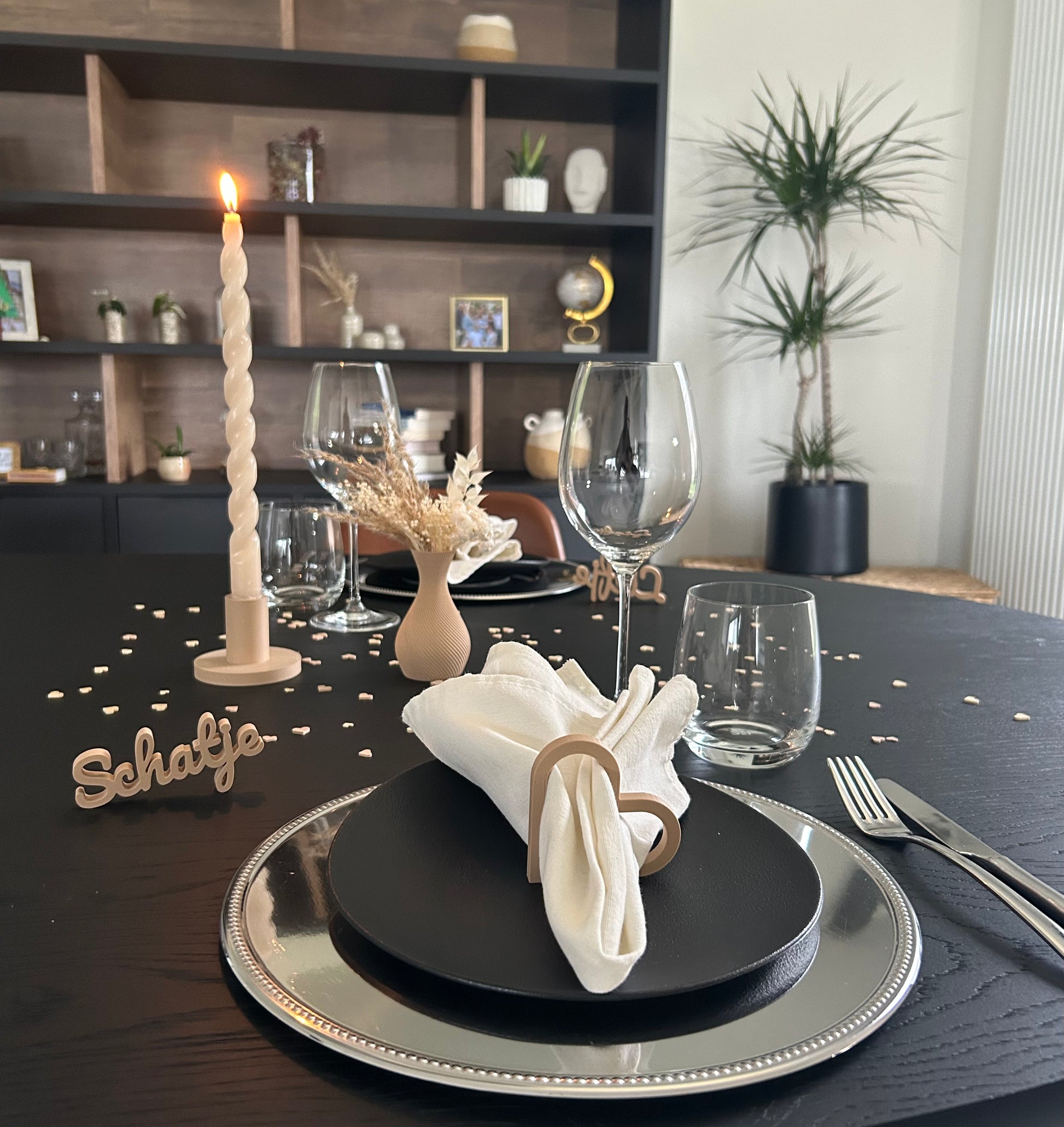 Voeg een vleugje liefde toe aan je tafelsetting met onze prachtige 3D-geprinte servetring in de vorm van een hartje. Dit unieke accessoire is een stijlvolle keuze voor elke gelegenheid.